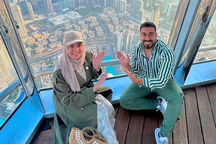 Continue to the 125th floor, designed with elegant Arabic mashrabiya décor, and enjoy a spacious viewing deck equipped with high-powered telescopes that allow you to zoom in on iconic landmarks such as Palm Jumeirah, Burj Al Arab, Dubai Marina, and Ain Dubai.